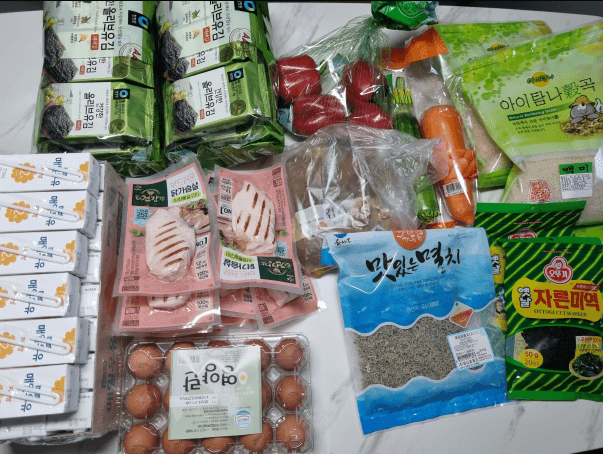 아이와 엄마가 먹는 제품이라 그런지 깔끔하게 포장되어 배달되네요. 식품이 배송되기 전에 배달되는 식품의 종류와 날짜를 문자로 전송해 줘서 장보기 할 때도 참고가 됩니다.